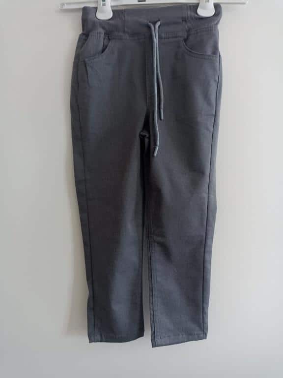 Doğal ve sağlıklı kumaşlardan gri renkli pantolon, şort etek veya etek.